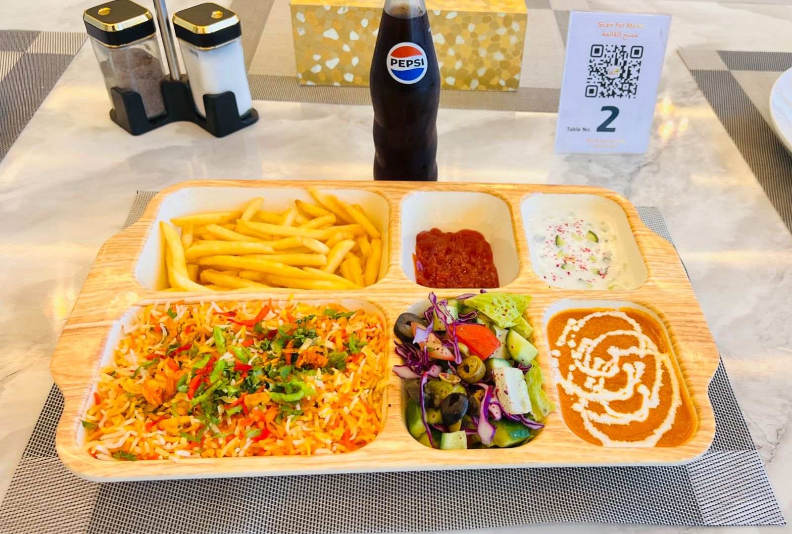 وجبة برياني دجاج مع بيبسي
