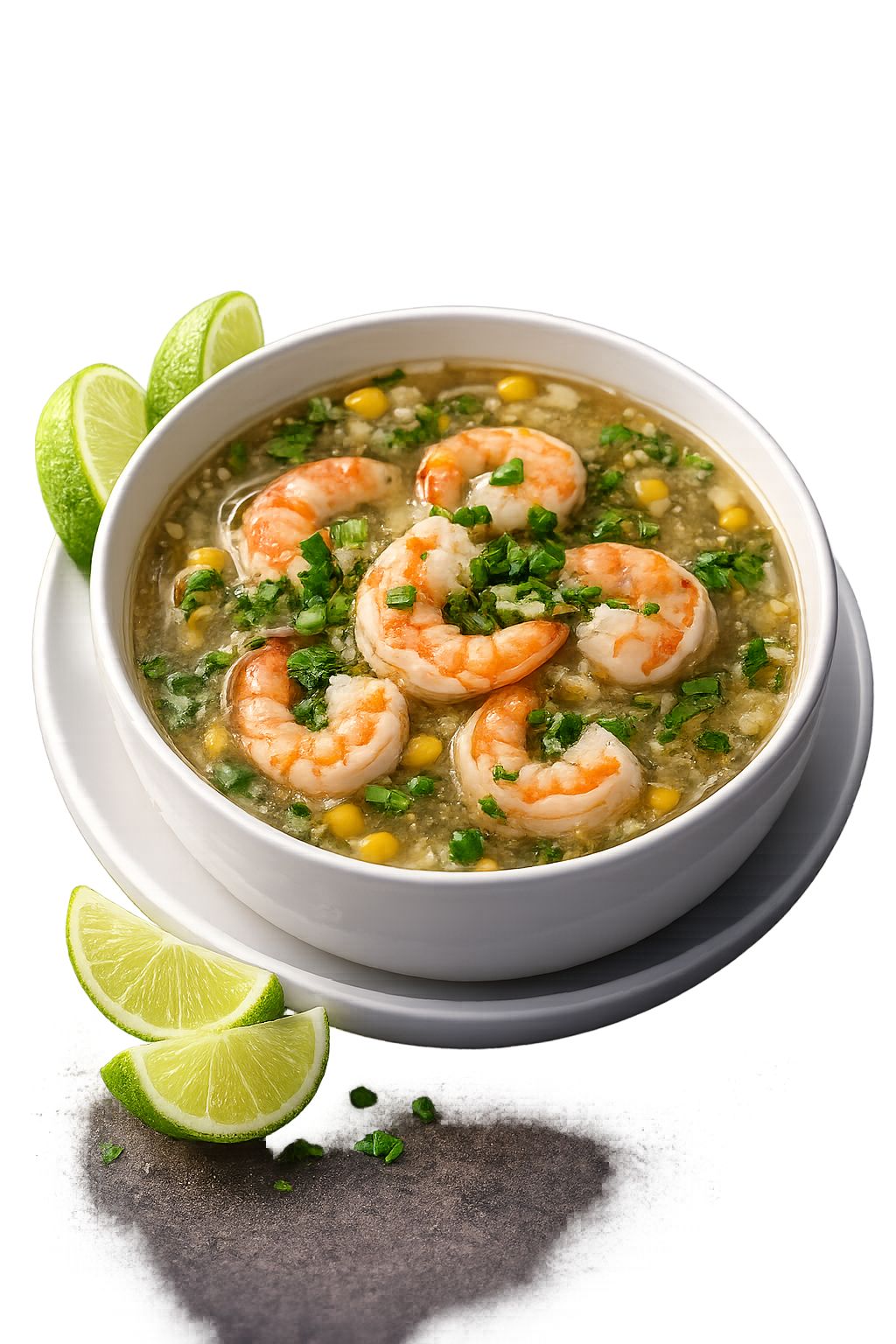 روبيان لذيذ مطهو ببطء مع الذرة الحلوة في حساء خفيف ولذيذ، متبل بالأعشاب والتوابل ليكون طبقًا شهيًا ومريحًا كمقبلات.Delicious prawn