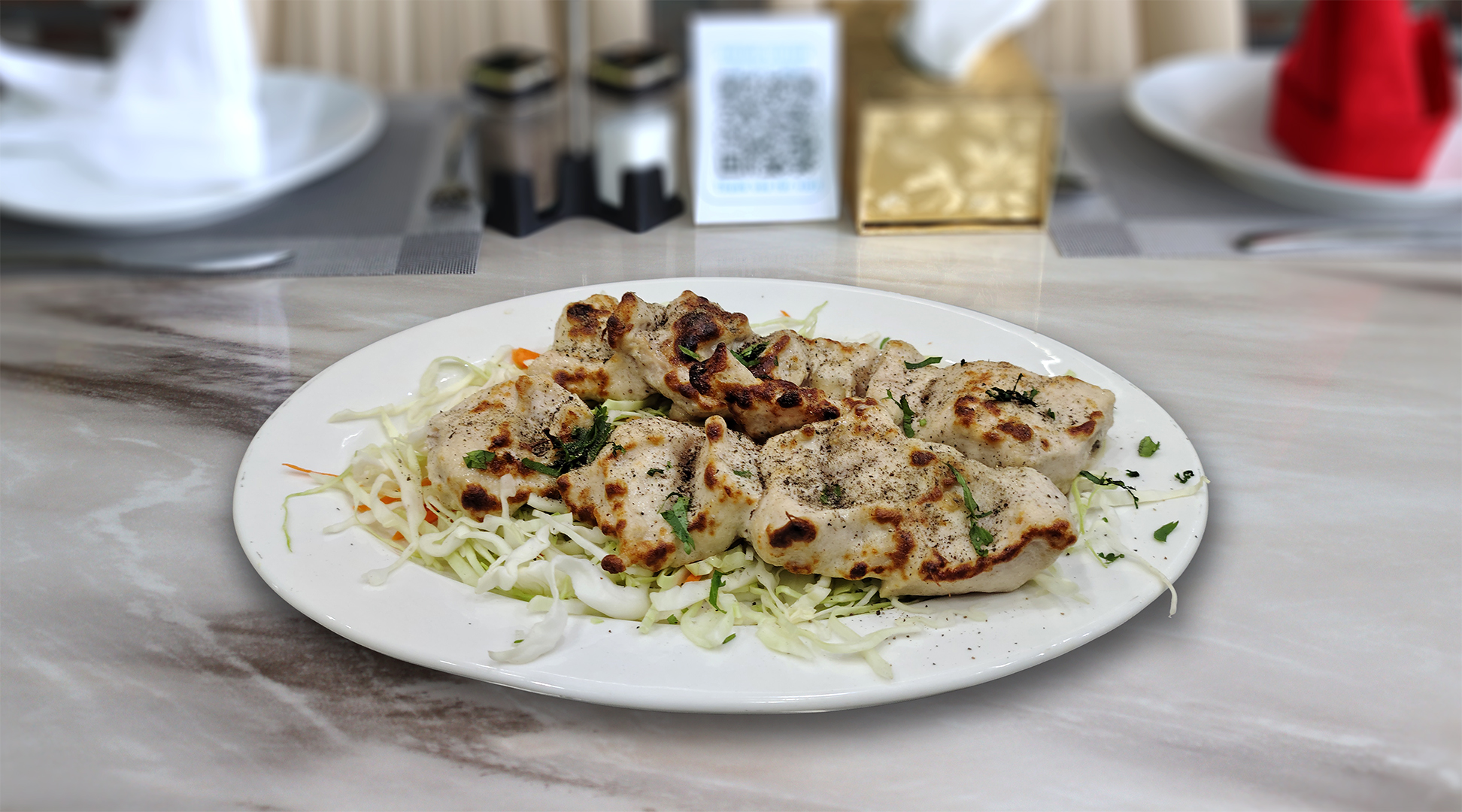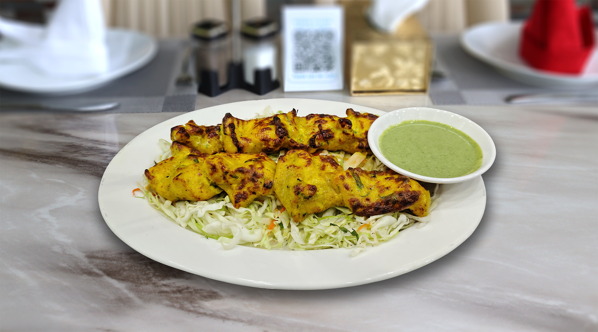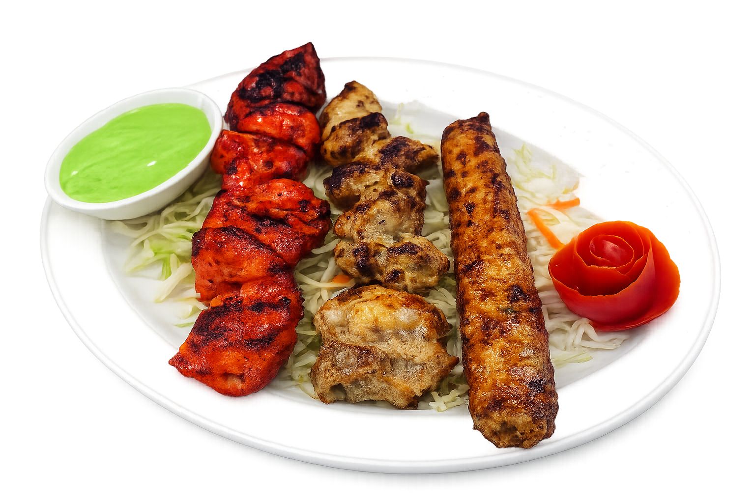 تشمل وجبة الدجاج المشوي المشكل الصغيرة تيكا، سيخين، وكباب Mini Chicken Mixed Grilled includes tikka 2 seekh and kebab